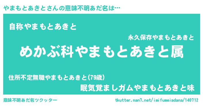 | 男性向けラノベタイトル風あだ名 | 『ヤマモトアキトスレイヤー』 |