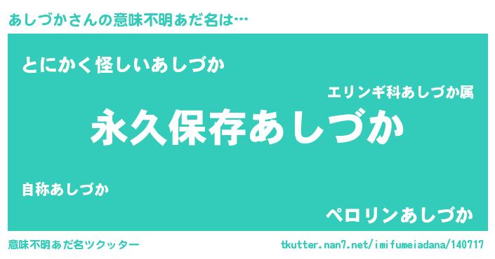 | 男性向けラノベタイトル風あだ名 | 『あしづかという概念が存在しない退屈な世界 』 |