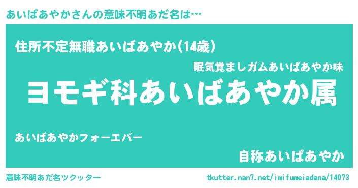 | ヘコむあだ名 | 『レバニラ』『あいばあやか(笑)』 |