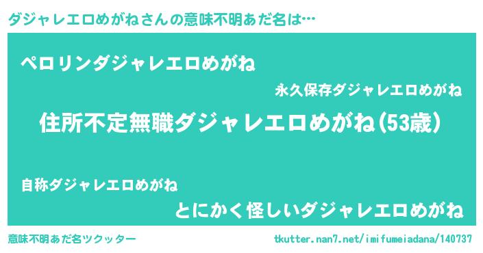 | 女子向けラノベタイトル風あだ名 | 『ダジャレエロめがねが死なない童話 林檎のダジャレエロめがねの診療簿』 |
