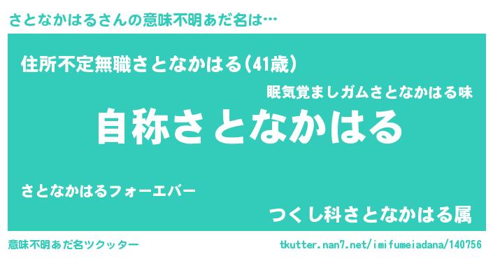 | 女子向けラノベタイトル風あだ名 | 『さとなかはるなんてお断りですっ。』 |
