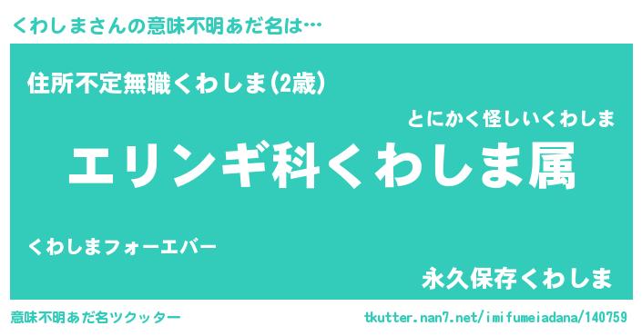 | 男性向けラノベタイトル風あだ名 | 『クワシマスレイヤー』 |