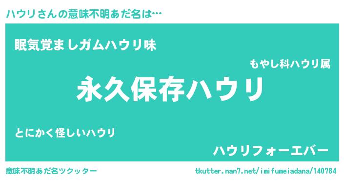 | 胡散臭い通販商品みたいなあだ名 | 『来世でも幸せになれる水素水…その名も「ハウリ」』 |