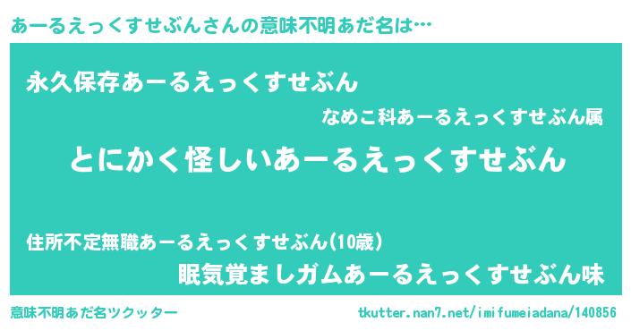 | 欧米人風あだ名 | 『アンジェラ・あーるえっくすせぶん』 |
