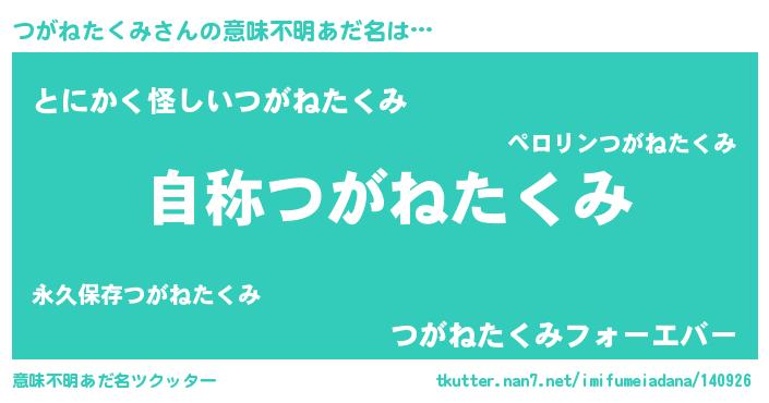 | 欧米人風あだ名 | 『アンジェラ・つがねたくみ』 |