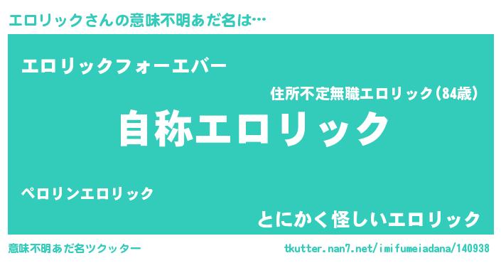 | 男性向けラノベタイトル風あだ名 | 『Re:エロリックから始める異世界生活』 |