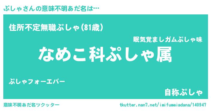 | 女子向けラノベタイトル風あだ名 | 『ぷしゃの玉の輿計画!』『闇のぷしゃ』 |