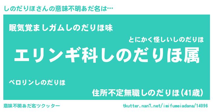 | 料理風あだ名 | 『しのだりほごはん』 |