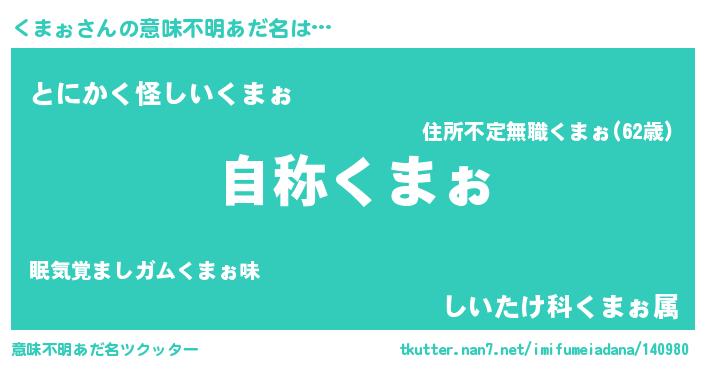 | ピコ太郎風あだ名 | 『クマ二郎』『クク太郎』『ピコク郎』 |