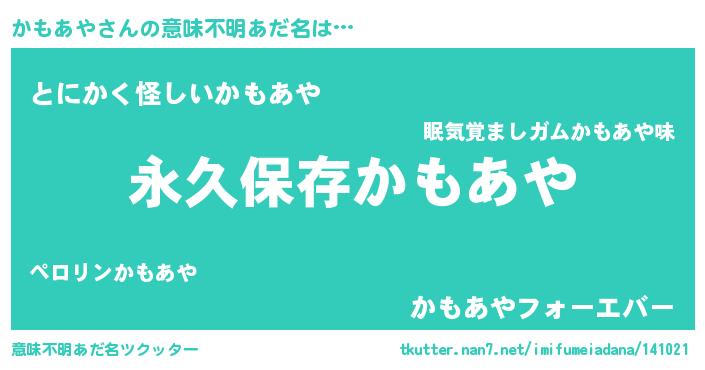 | 胡散臭い通販商品みたいなあだ名 | 『来世でも幸せになれる水素水…その名も「かもあや」』 |