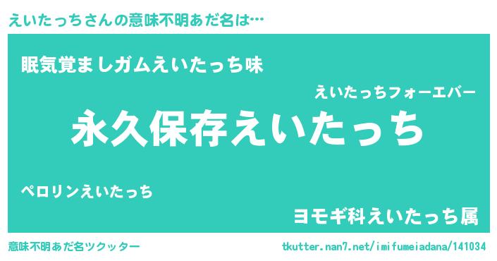 | 胡散臭い通販商品みたいなあだ名 | 『絶対に幸福をもたらす水素水…その名も「えいたっち」』 |