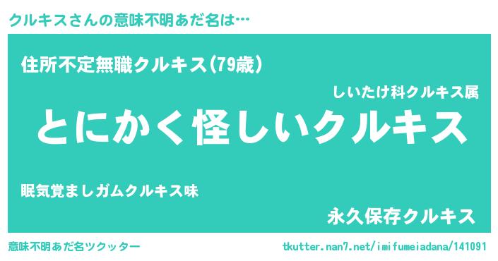 | ヘコむあだ名 | 『クルを』『クルキス(苦笑)』『牛乳』 |