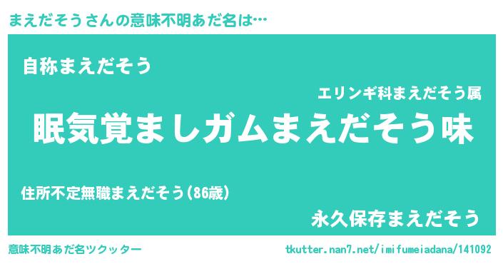 | 男性向けラノベタイトル風あだ名 | 『ノーゲーム・ノーマエダソウ』 |