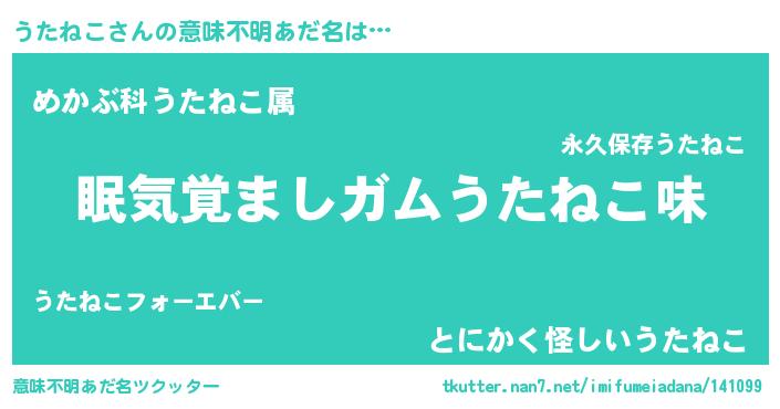 | 欧米人風あだ名 | 『ダニエルうたねこ』『ウサインうたねこ』 |