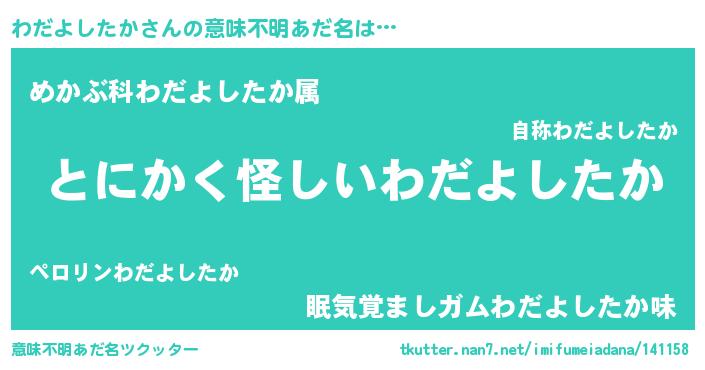 | 女子向けラノベタイトル風あだ名 | 『わだよしたかの卵を拾いまして』 |