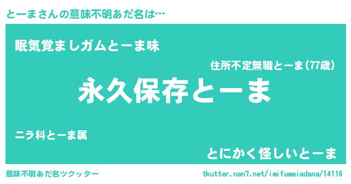 | ヒーロー風カッコイイあだ名 | 『ネオトーマ』『慈愛の使者とーま』 |