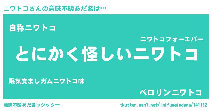 | ヘコむあだ名 | 『ニワっ子』『ニワにー』『なまこ酢』 |