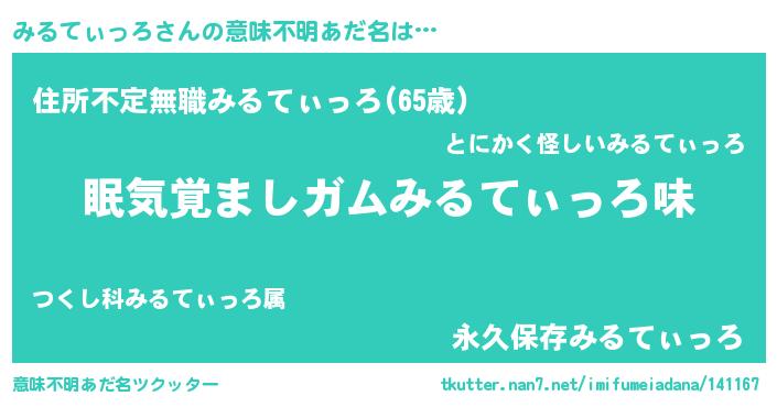 | 胡散臭い通販商品みたいなあだ名 | 『お金では代えられないイリジウム磁石…その名も「みるてぃっろ」』 |