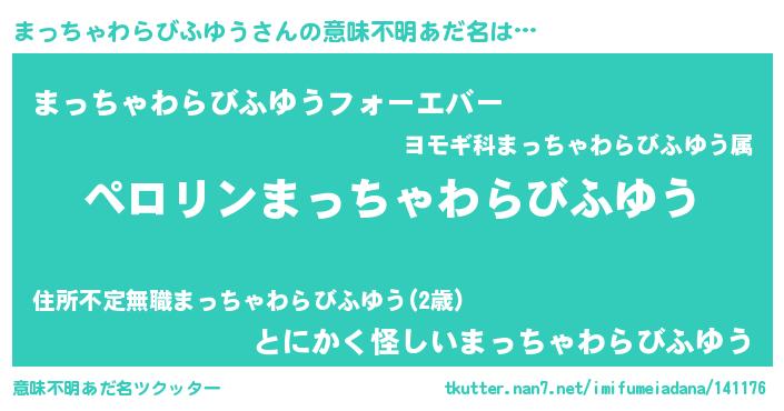 | 欧米人風あだ名 | 『マイケルまっちゃわらびふゆう』 |