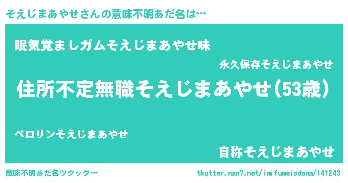 | ヘコむあだ名 | 『そえじまあやせ(爆)』『そえもー』 |