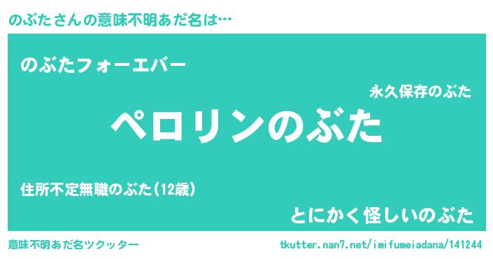 | 男性向けラノベタイトル風あだ名 | 『のぶたの憂鬱』『緋弾のノブタ』 |