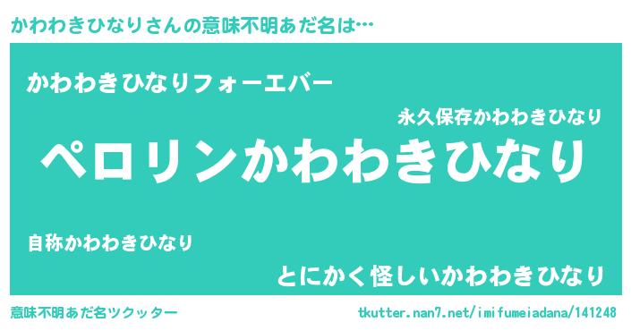 | 胡散臭い通販商品みたいなあだ名 | 『億万長者になれる水晶球…その名も「かわわきひなり」』 |