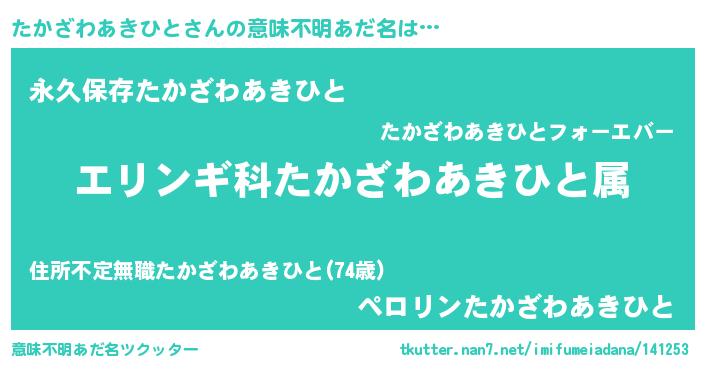 | 男性向けラノベタイトル風あだ名 | 『タカザワアキヒトスレイヤー』 |