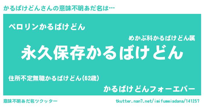 | 男性向けラノベタイトル風あだ名 | 『かるばけどんという概念が存在しない退屈な世界 』 |
