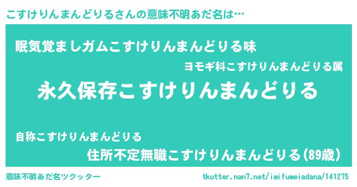 | 伝説のあだ名 | 『古より伝わる吟遊詩人こすけりんまんどりる』 |