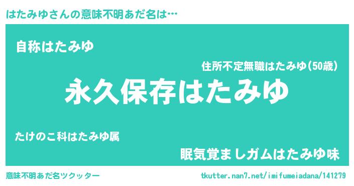| 胡散臭い通販商品みたいなあだ名 | 『絶対に幸福をもたらす水素水…その名も「はたみゆ」』 |