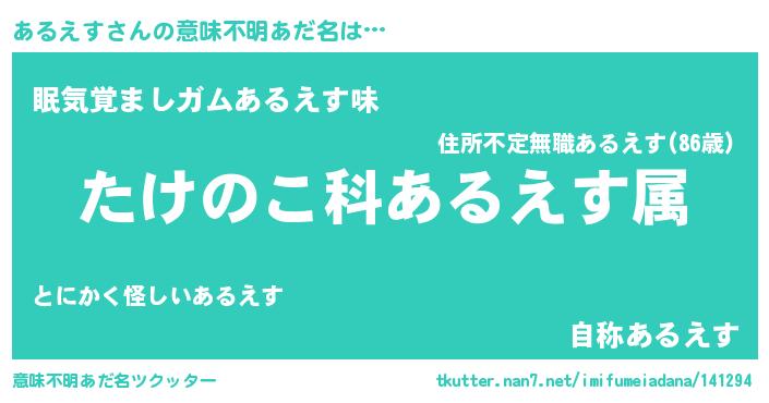 | ヘコむあだ名 | 『あるっぺ』『あるえす(小並感)』 |