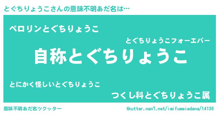 | ヘコむあだ名 | 『とぐふぇ~』『酢こんぶ』『とぐお』 |