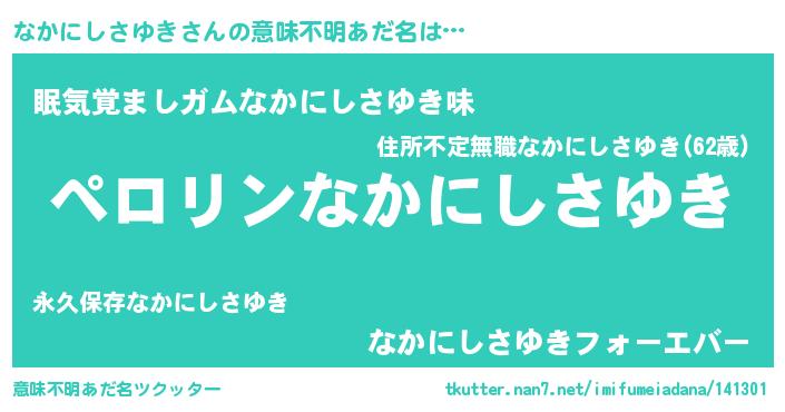 | 胡散臭い通販商品みたいなあだ名 | 『億万長者になれる霊験あらたかなお札…その名も「なかにしさゆき」』 |