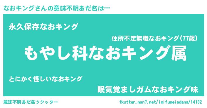 | 男性向けラノベタイトル風あだ名 | 『転生したらなおキングだった件』 |