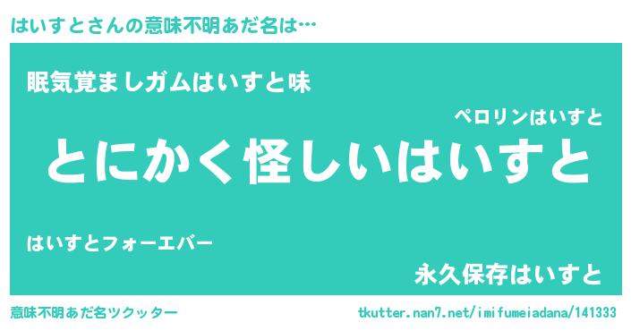 | 胡散臭い通販商品みたいなあだ名 | 『全米が絶賛したサプリメント…その名も「はいすと」』 |