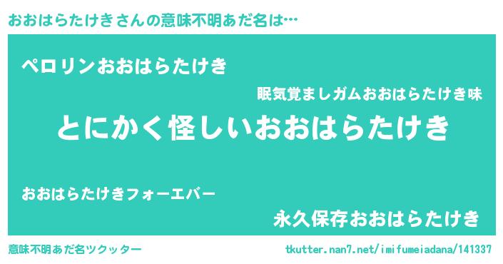 | 欧米人風あだ名 | 『ウサインおおはらたけき』 |