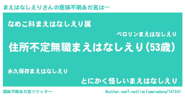 | 女子向けラノベタイトル風あだ名 | 『まえはなしえりが死なない童話 林檎のまえはなしえりの診療簿』 |