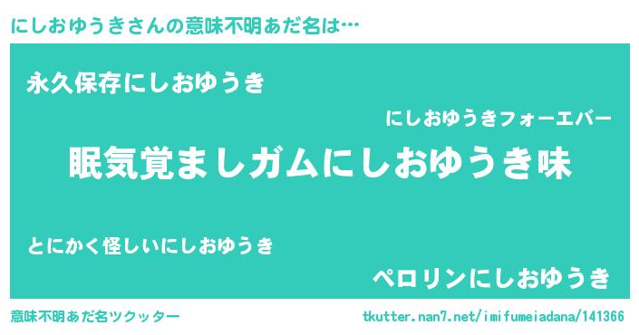 | 男性向けラノベタイトル風あだ名 | 『ノーゲーム・ノーニシオユウキ』 |