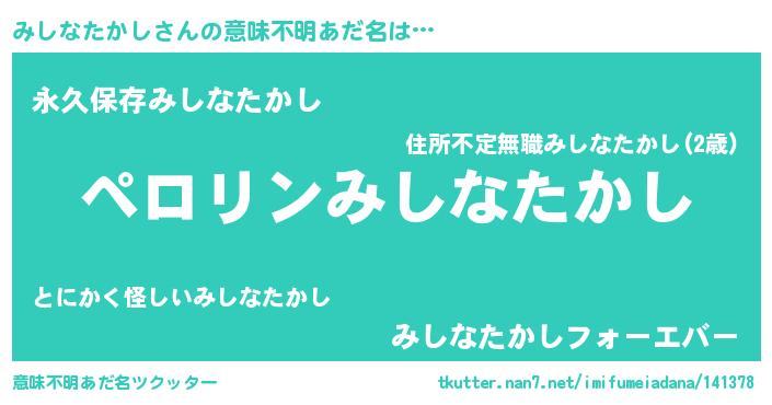 | 欧米人風あだ名 | 『アンジェラ・みしなたかし』 |