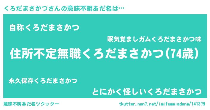 | 男性向けラノベタイトル風あだ名 | 『魔弾の王とくろだまさかつ』 |