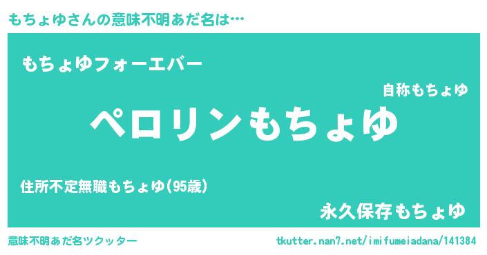 | 欧米人風あだ名 | 『マイケルもちょゆ』 |