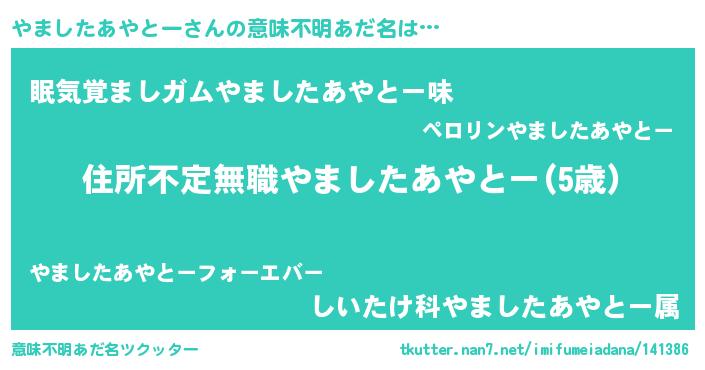 | 男性向けラノベタイトル風あだ名 | 『この素晴らしい世界にやましたあやとーを!』 |