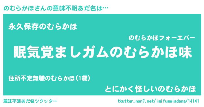 | 女子向けラノベタイトル風あだ名 | 『シンデレラのむらかほ家の靴箱館』 |