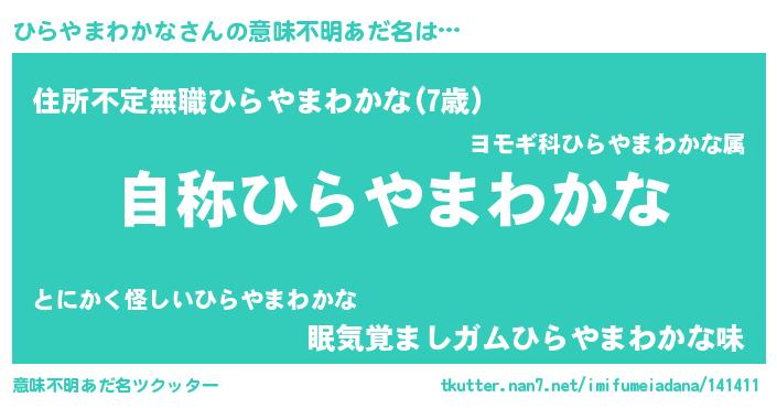 | 男性向けラノベタイトル風あだ名 | 『ひらやまわかなに滅ぼされるだけの簡単なお仕事です』 |