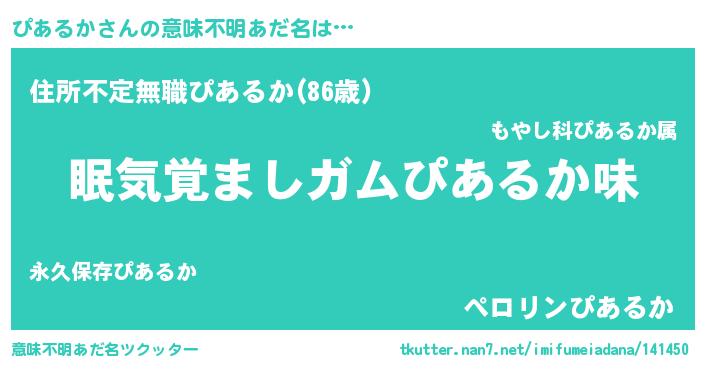 | ヘコむあだ名 | 『ぴあにゅー』『ぴあるか(震え声)』 |