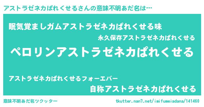 | 胡散臭い通販商品みたいなあだ名 | 『モテモテ間違いなしブレスレット…その名も「アストラゼネカぱれくせる」』 |