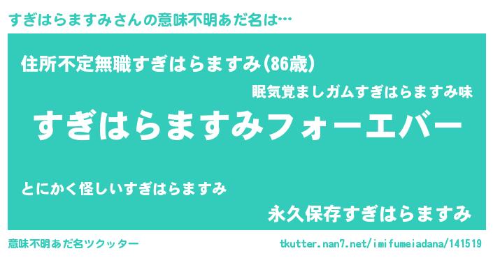 | ファンタジー風あだ名 | 『エターナルスギハラマスミー』 |