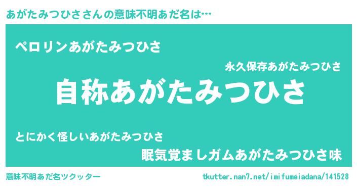 | 女子向けラノベタイトル風あだ名 | 『あがたみつひさなんてお断りですっ。』 |