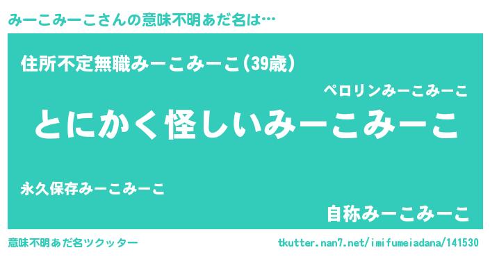 | 胡散臭い通販商品みたいなあだ名 | 『全米が絶賛したサプリメント…その名も「みーこみーこ」』 |