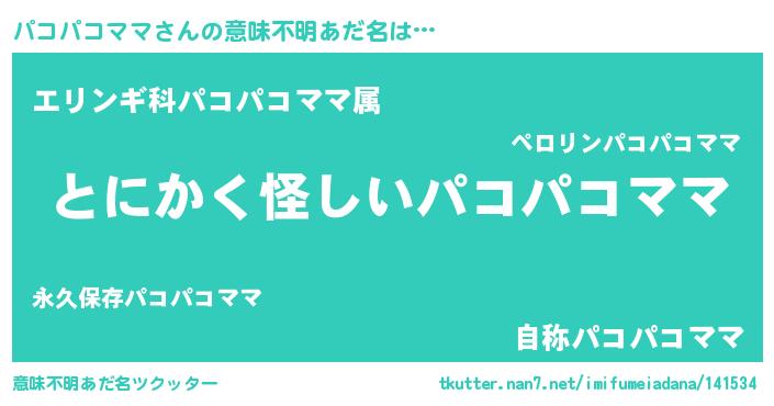 | ヒーロー風カッコイイあだ名 | 『魔戒騎士パコ』『スーパーパコパコママ』 |
